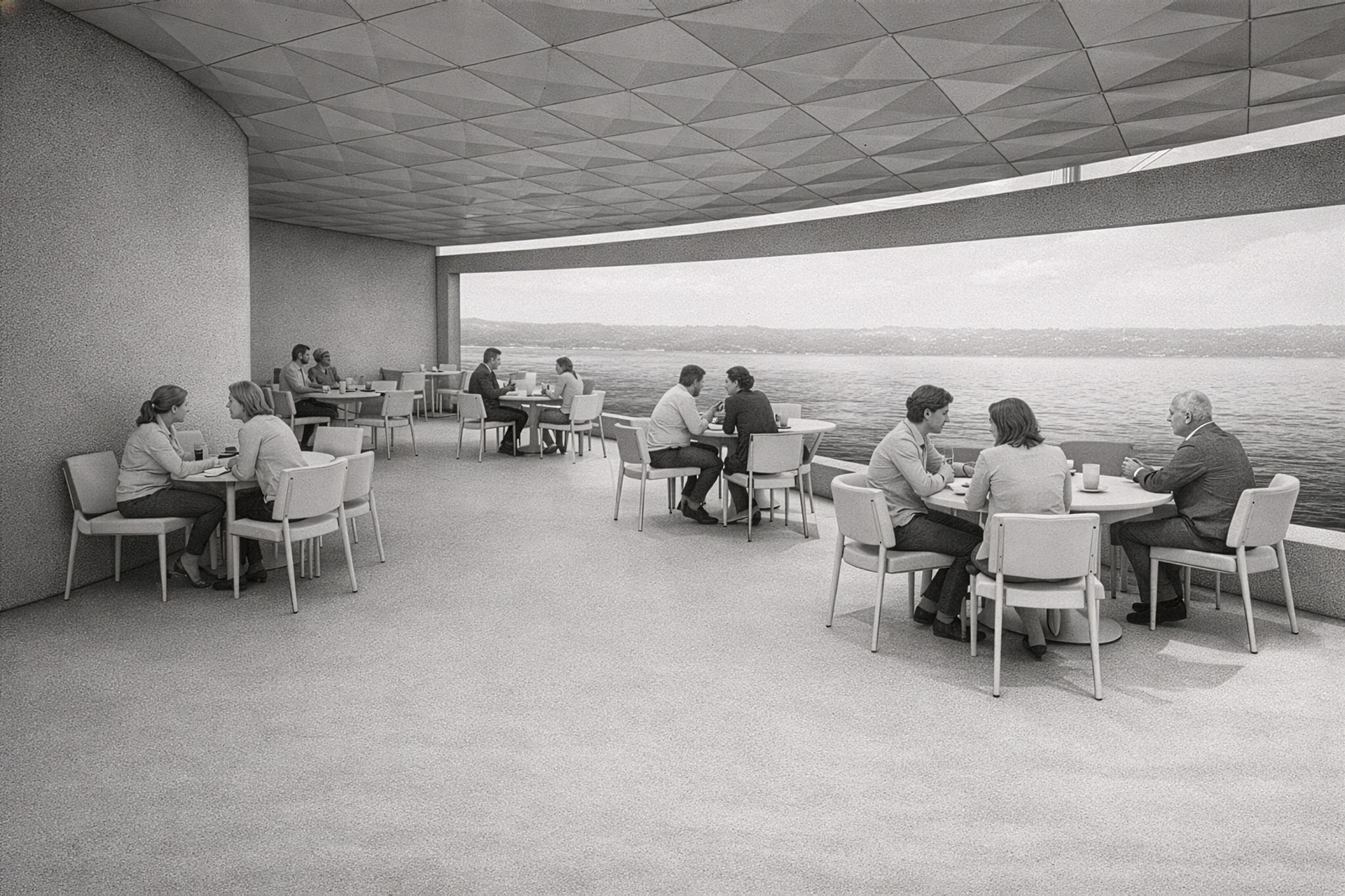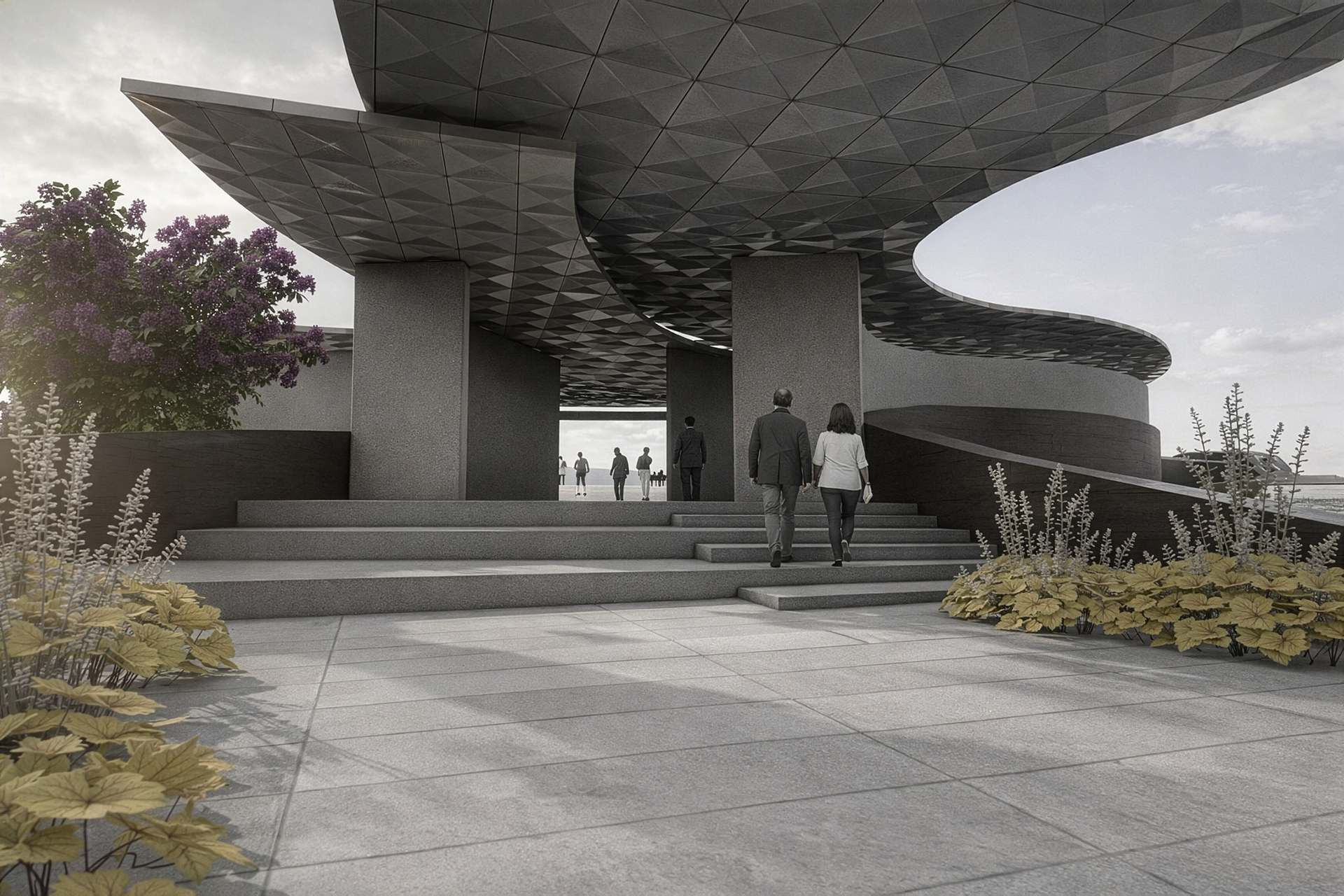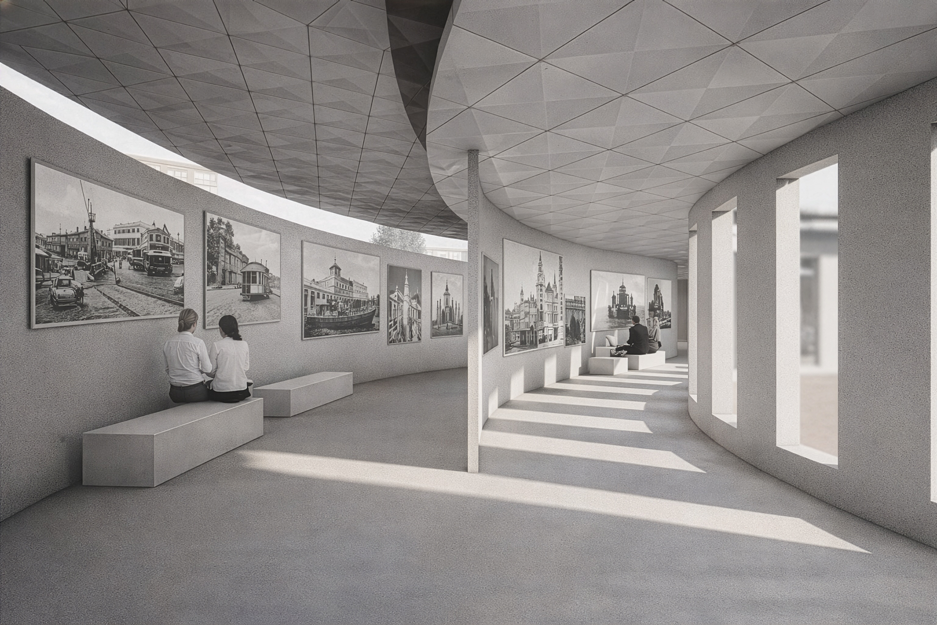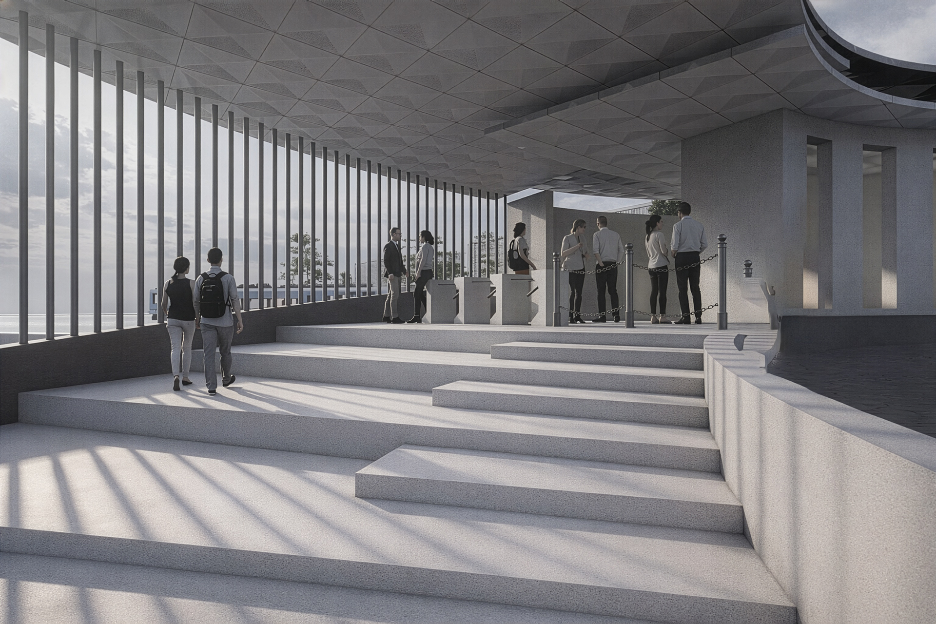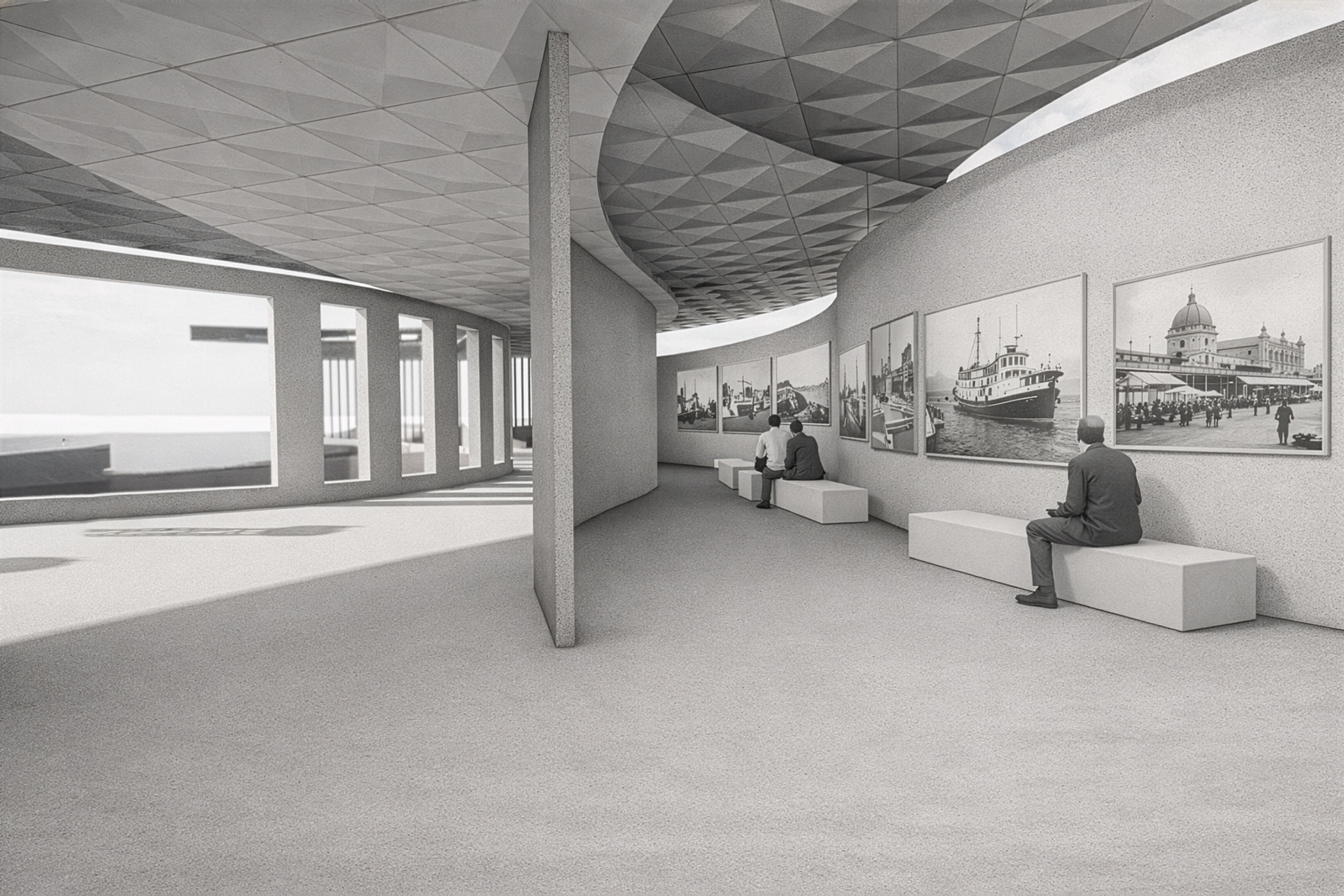 Rather than approaching the port infrastructure solely as a logistical node facilitating passenger circulation, the proposal reconceptualizes the coastal edge as a mnemonic interface through which the collective memory of the city may be spatially communicated. In this regard, the design introduces a linear gallery system integrated into the exist-ing commuter pathways, enabling the transmission of historical and cultural content through exhibition-based public surfaces embedded within the transit environment.